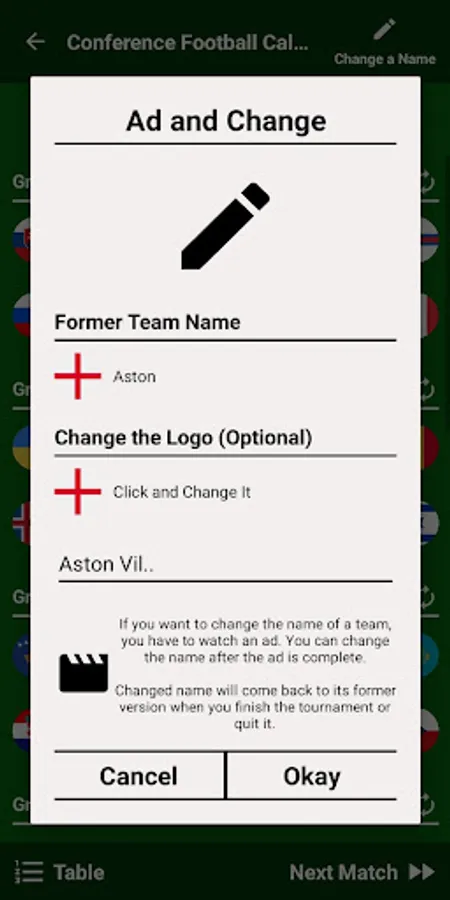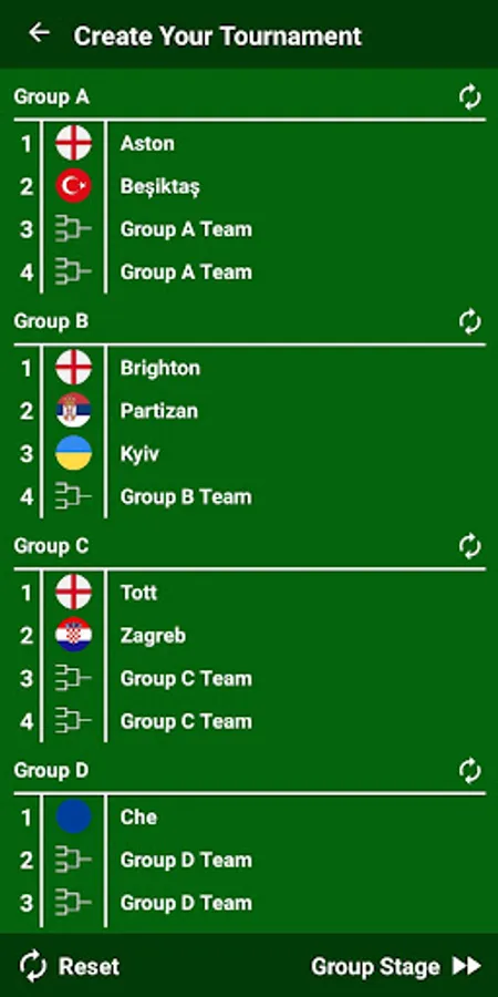 There are also tournament creation feature in the app, you can create all 32 teams of the tournament and simulate it. You can create a logo for them too.