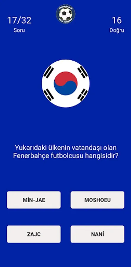 There is also a part of the application where you will try to know the nationalities of 32 different Fenerbahçe football players.