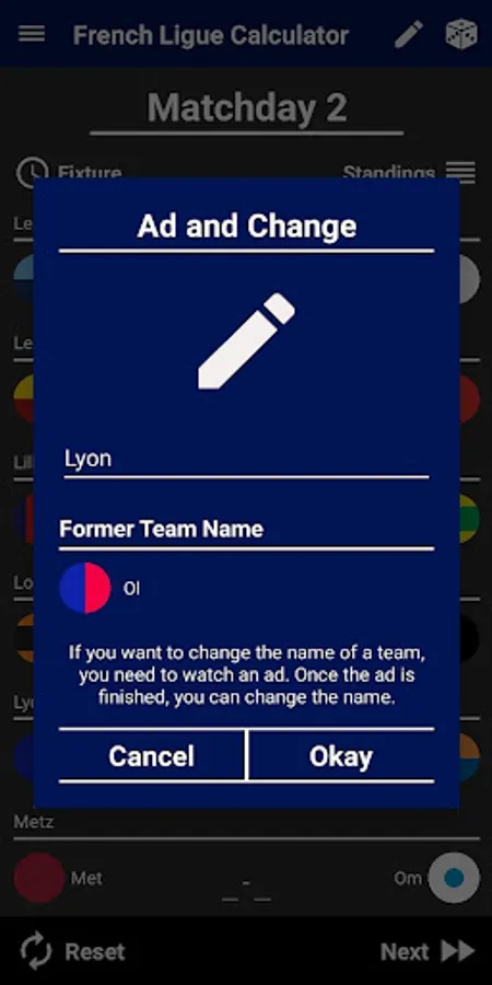 There is also a feature in this application: you can change the team names as you wish. This is how you can add different teams to the French League.