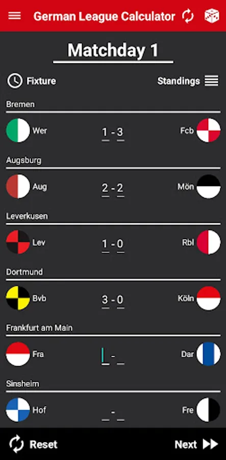 With this app, you can simulate the 2023/24 season of the German Football League with real match dates. You can also use this app to check team schedules and general league fixtures.