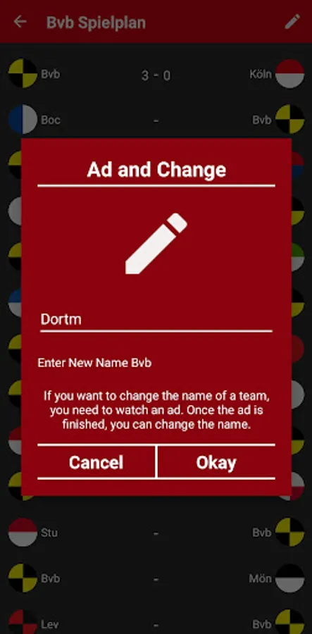There is also a feature in this app: you can change the names of teams as you wish. This way, you can add different teams to the German league.