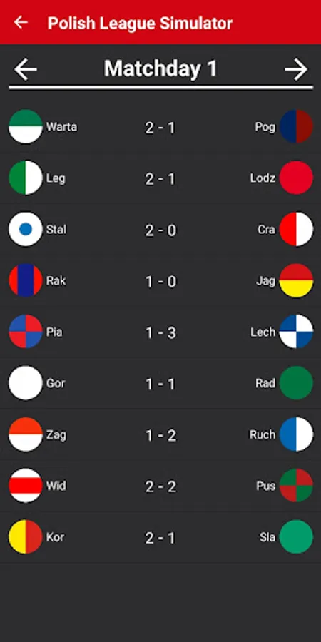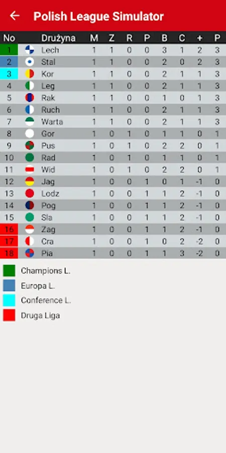 With this application you can simulate the games of the Polish Football League of the 2023/24 season with real matches. You can also use this app to check team match lists and general league matches.