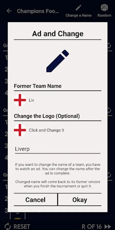 You can also create your own tournament with your own teams. You can select a country and create a team from this country and you can also create a logo for this team. You can change the names of the original tournament teams too.