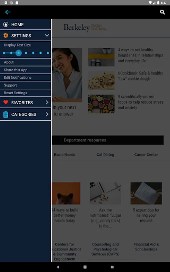 This is Berkeley Student Well-Being, the wellness app that’ll give you an insider, evidence-based info on living your best student life. Our tips are research-based, engaging, expert-backed, and student-approved, so you can read, watch,