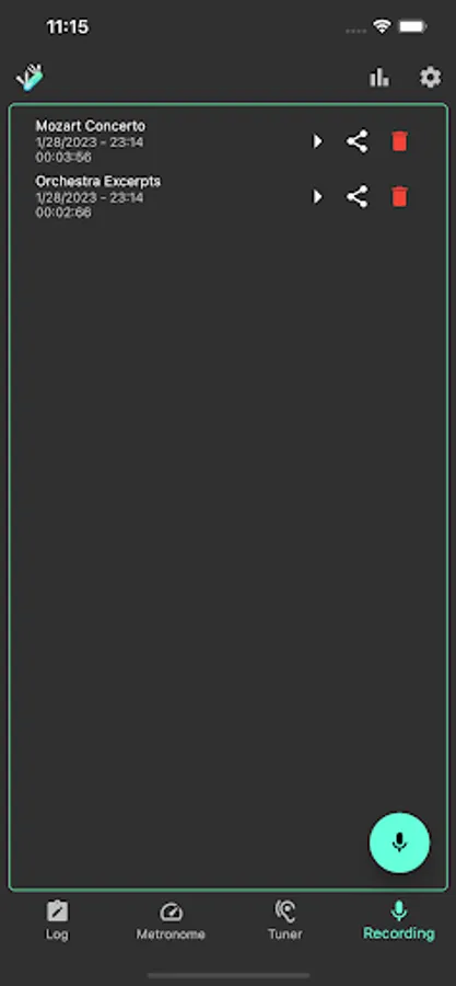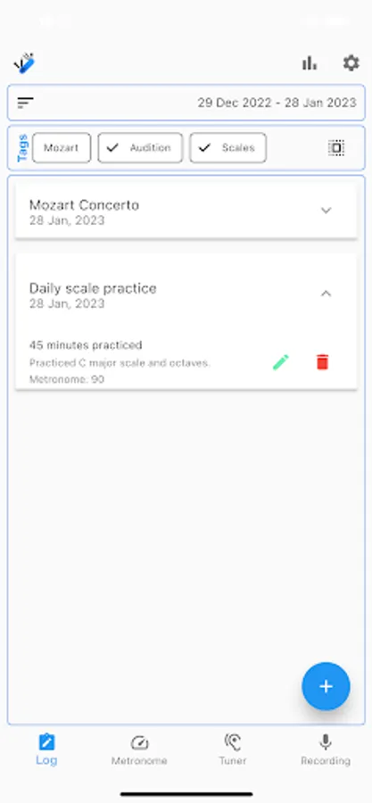 With the built-in Log feature, you can keep track of your practice sessions, set goals, and monitor your progress over time.
