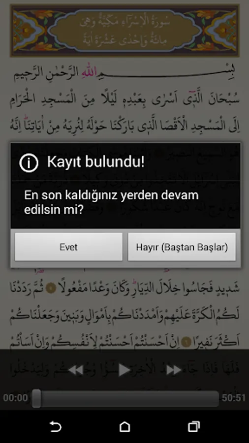 * To start the page you requested; If stop the media player is turned on. (Not where you want to start reading from the Koran) read point by pressing the play button and the page you want.