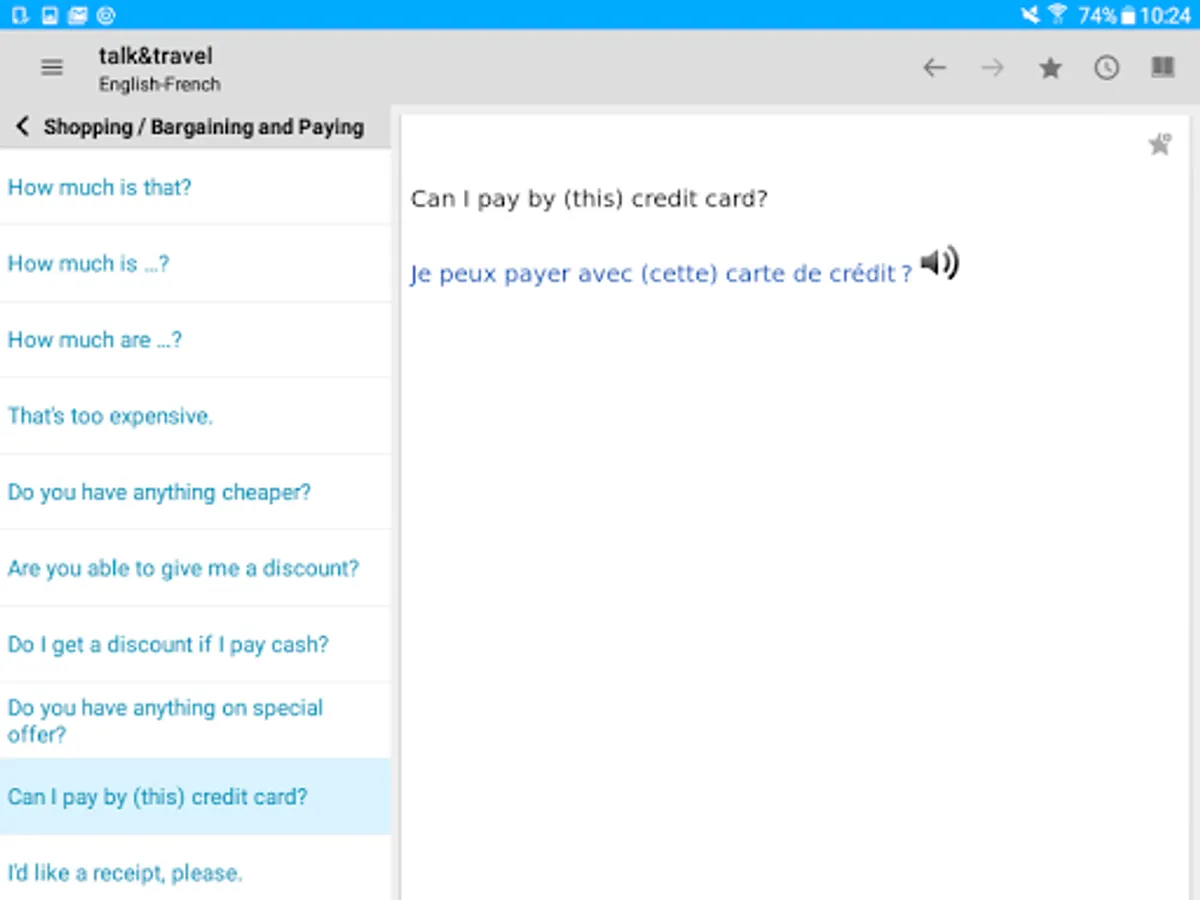 • Up to 3,800 words and phrases conveniently arranged into typical travel situations