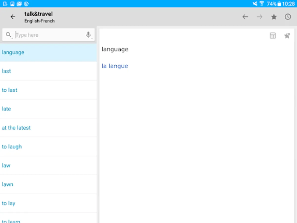 • For immediate access – add important phrases to Favorites or retrieve the phrases you recently looked up in History