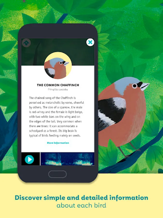 • Observation mode lets you listen to all the birds, and the accompanying text provides simple and precise information about each bird