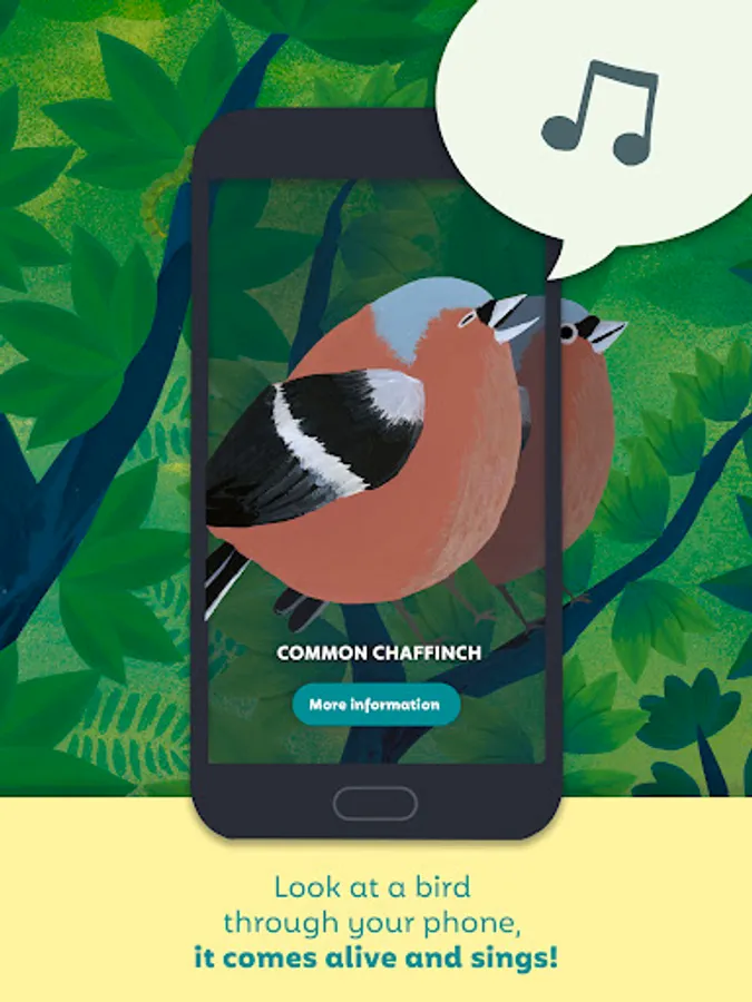 In this augmented reality app, users can observe virtual birds by holding their device in front of real birds and listen to their songs. Includes bird sound playback, educational info, and game modes for testing recognition skills.