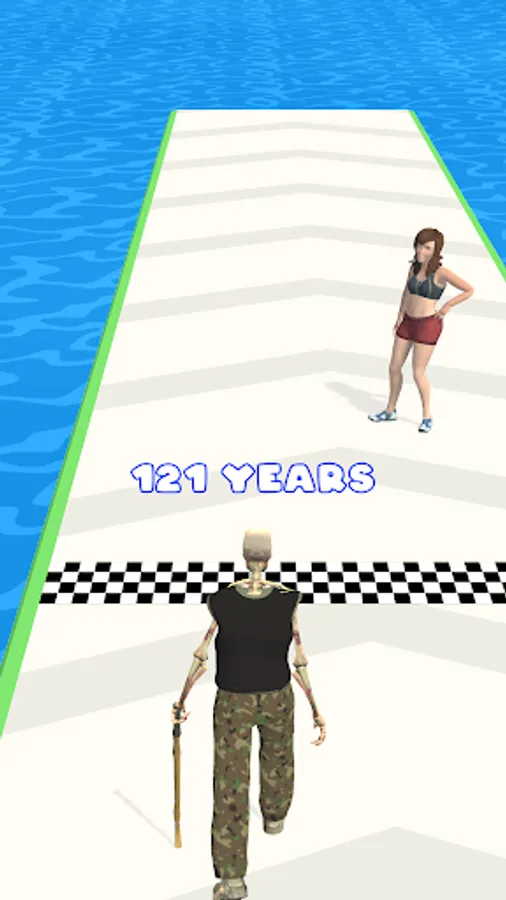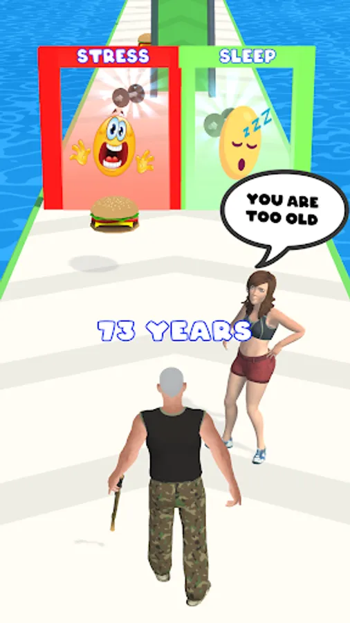 Care about your body and become younger to get your girl! Be careful about bad things. You may become elder and even a skeleton.