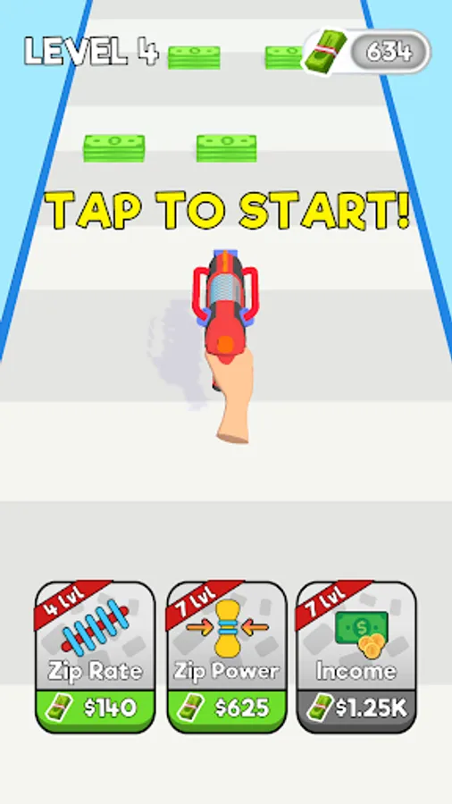 Use zip machine and repair chappy roads. Collect zip rate and power to repair them better and gain more money.