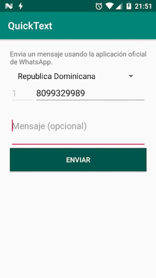 Application to send text messages using WhatsApp without having the number in the contacts.