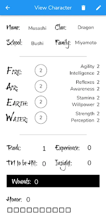 A digital character sheet for the 1st edition of the Legend of the Five Rings RPG. This app was written for personal use and will not have new features added.