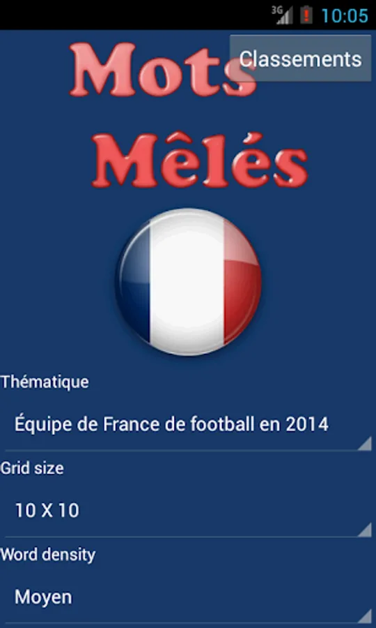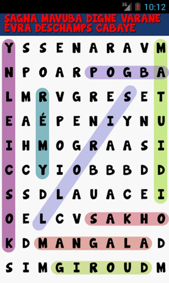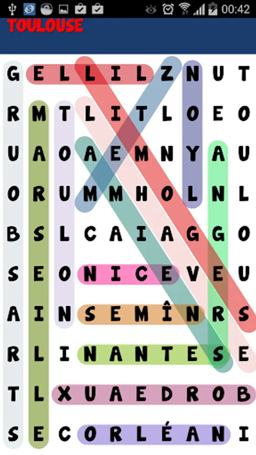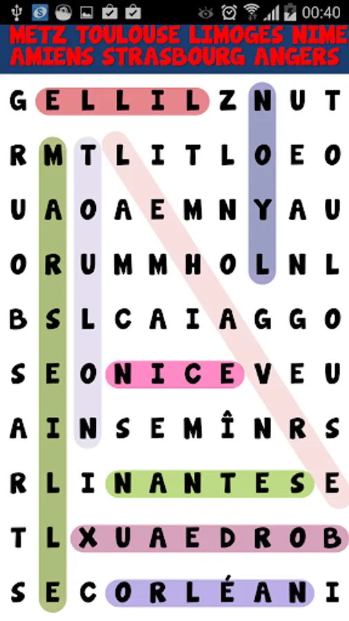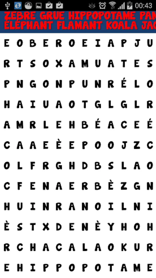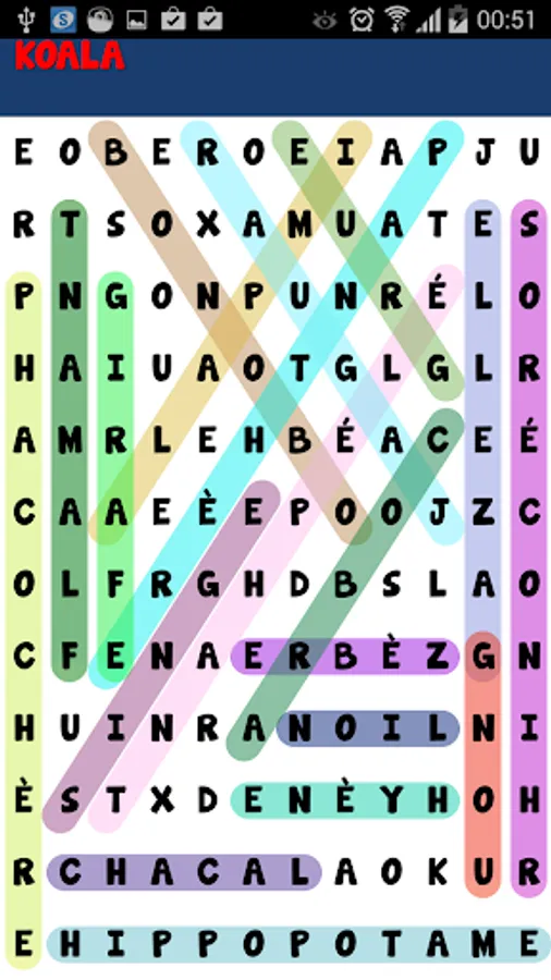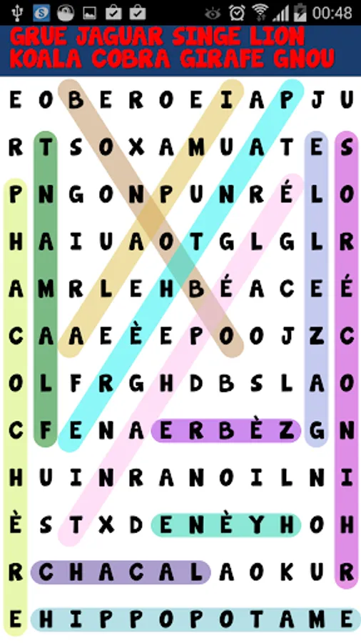 Mixed words, hidden words (or mystery word) is a game which consists of finding a list of words in a grid. Words can be found horizontally, vertically, obliquely, right side up or upside down. They can overlap and the same letter can be part of several words on the grid.