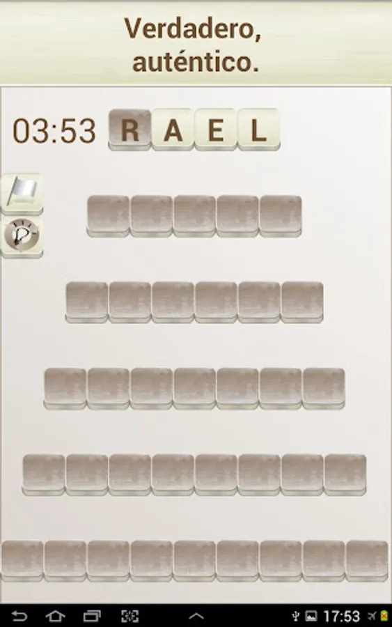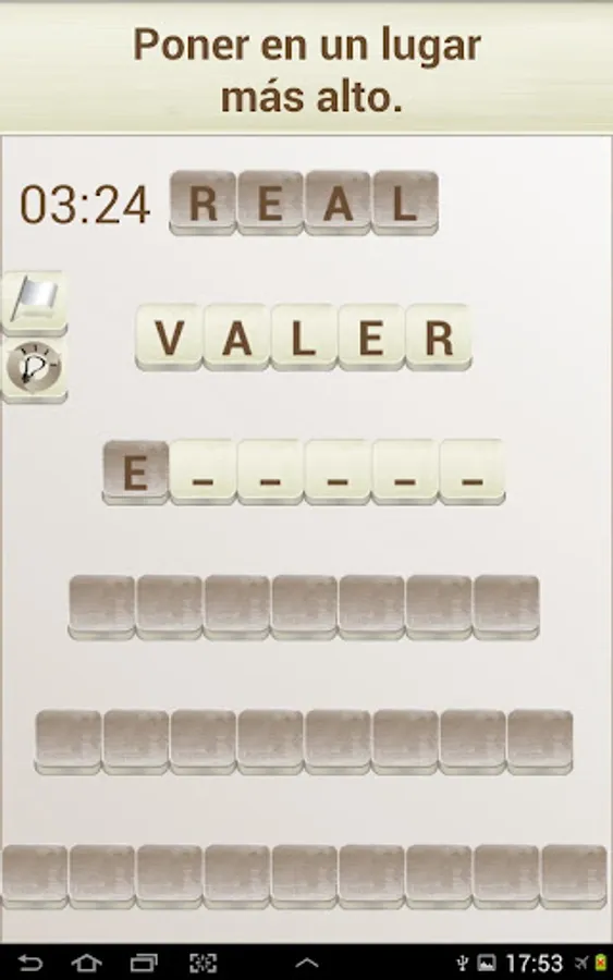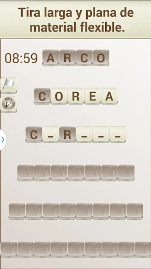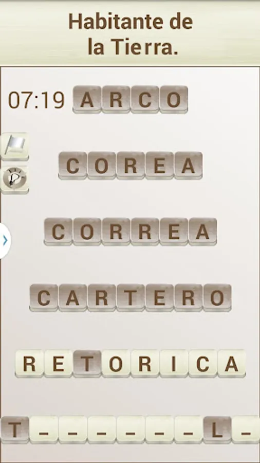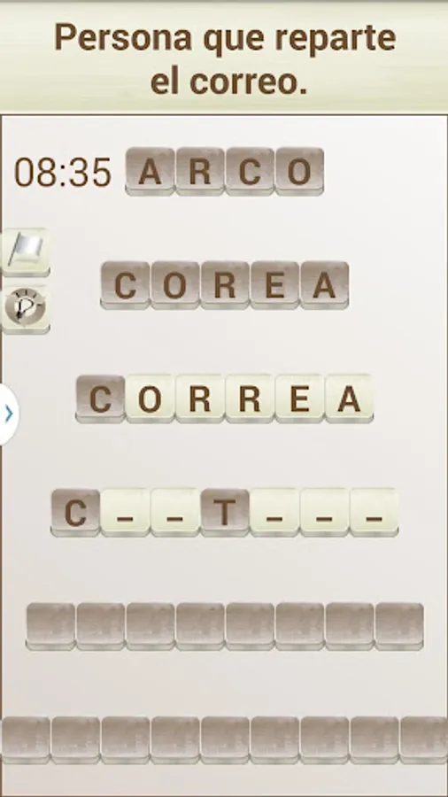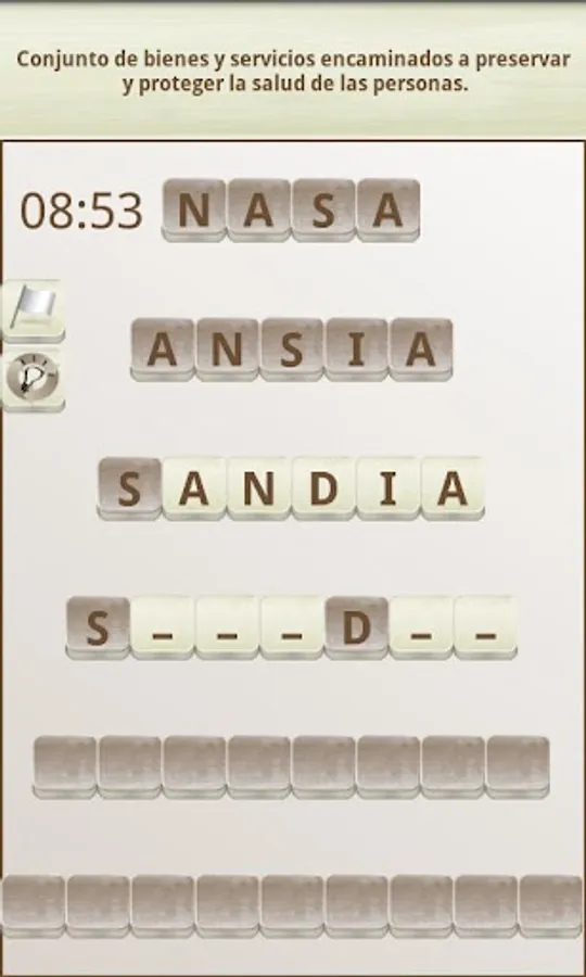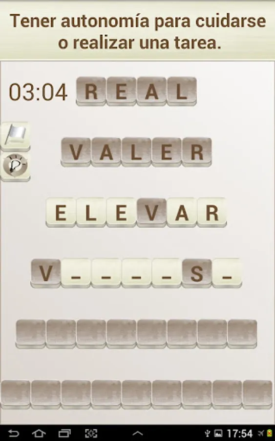 The objective of the game is to "build" words that fit with a given definition, in the style of a crossword puzzle. To do this you can move the tiles with the white background (the dark colored tiles can not be moved).