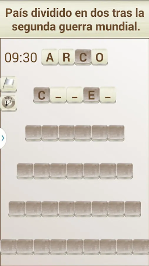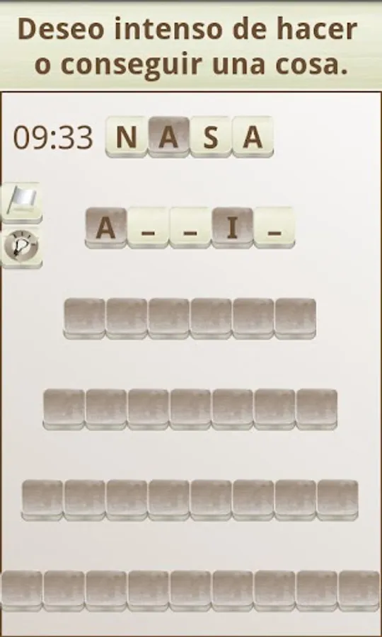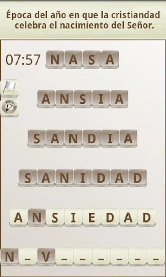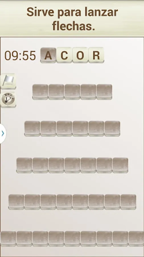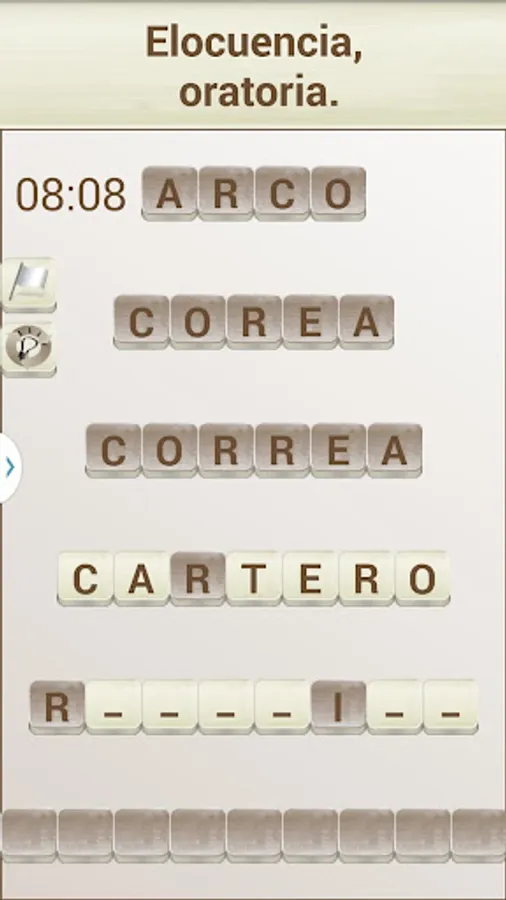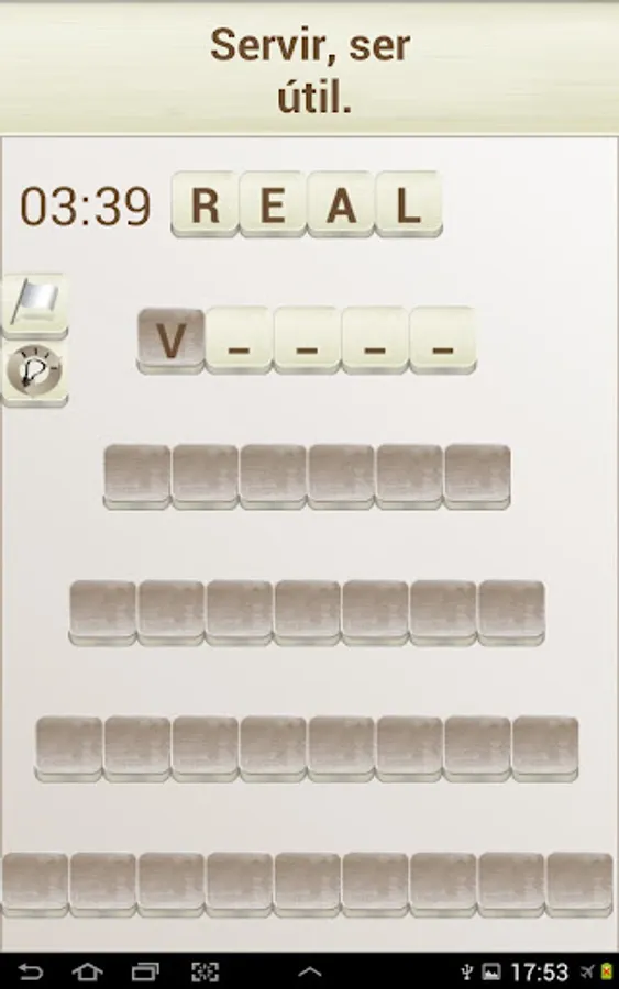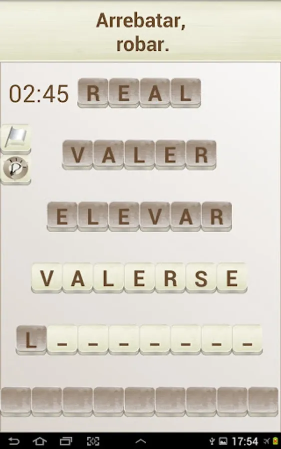 The objective of the game is to "build" words that fit with a given definition, in the style of a crossword puzzle. To do this you can move the tiles with the white background (the dark colored tiles can not be moved).