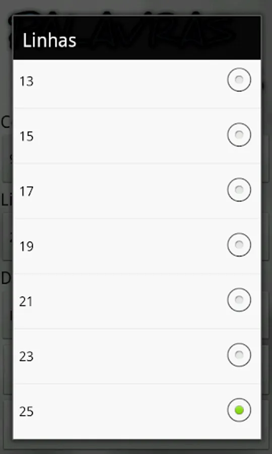 - Choose the number of lines (3 ... 25)