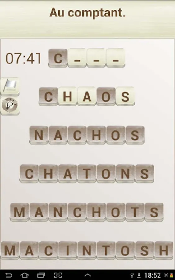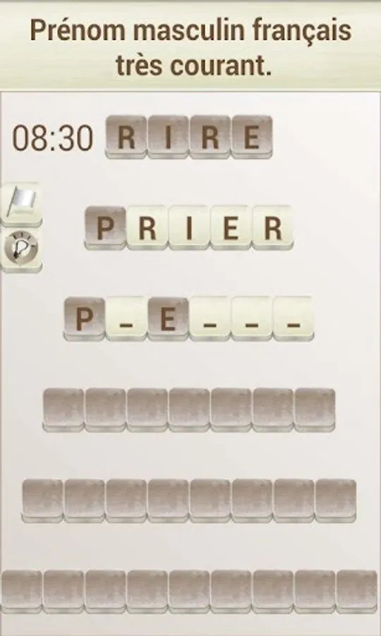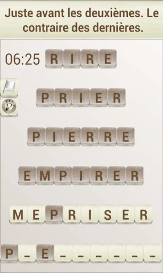 Each pyramid will have a list of 6 chained words of different lengths; here is an example :