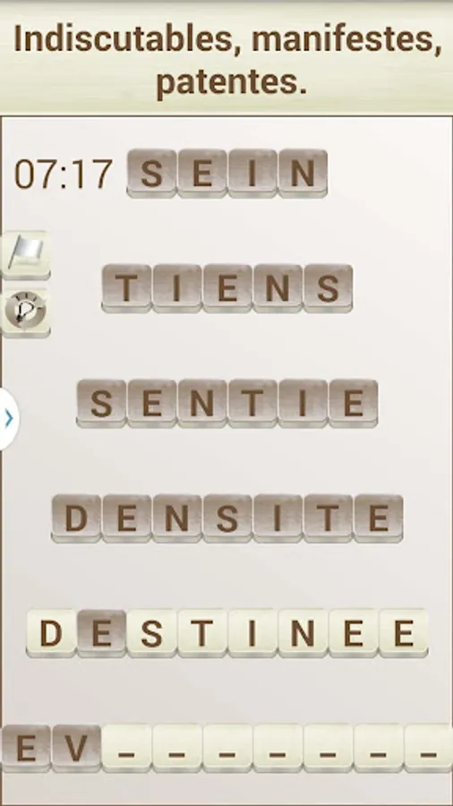 The purpose of the game is to form words corresponding to the definition given in the manner of the definitions of a crossword puzzle (arrow words). To do this, you could move the parts with a white background (but not those with a dark background).