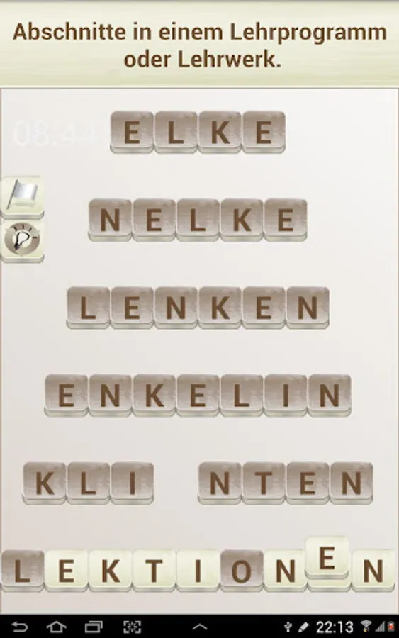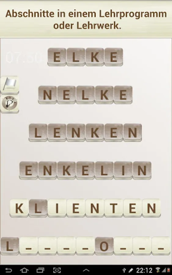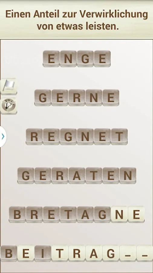 The aim of the game is to "build" words that match a given definition, similar to the rows of a crossword puzzle.