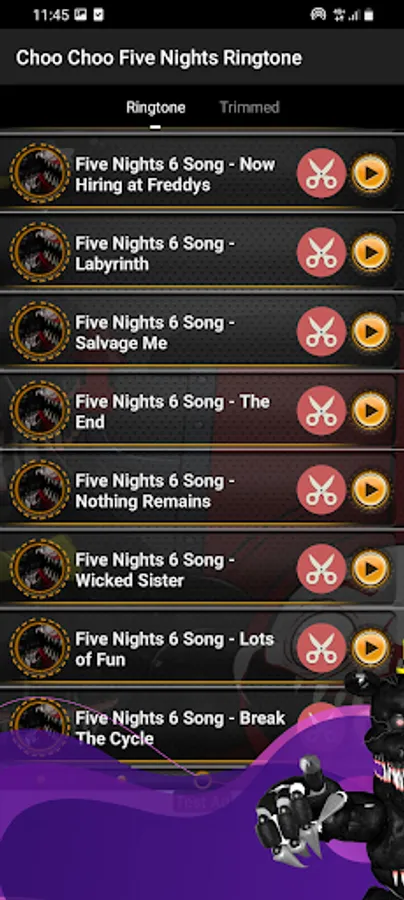 Personalize Your phone ringtone with Scary Choo Choo Charles Song, 5 Nights 6 Song, 5 Nights Candys Song and more...