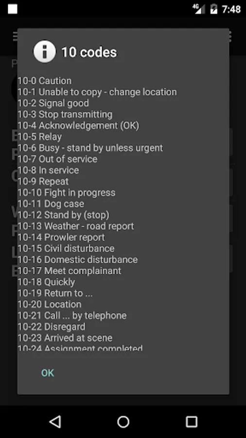 Police Radio 10-codes are included for quick reference so you can understand the chatter on the police radio.