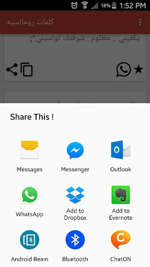 *مشاركة الرسائل علي وسائل التواصل الاجتماعي فيس بوك وواتسب اب