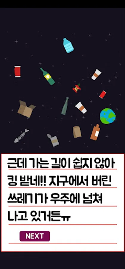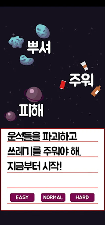 But the road to go is not easy, so I got a king. Garbage thrown away from Earth is overflowing in space. You have to destroy the meteorites and pick up the garbage. Let's start now!