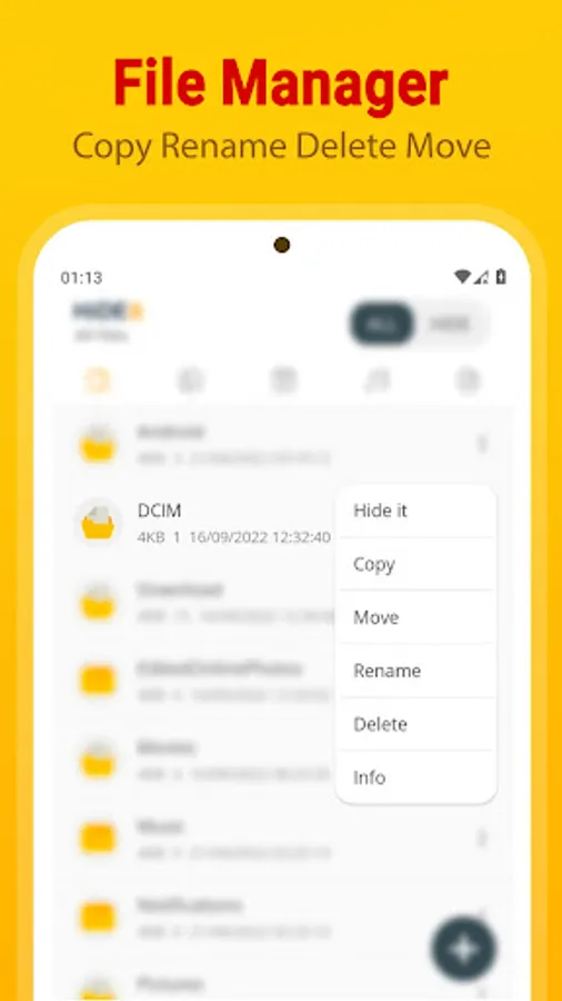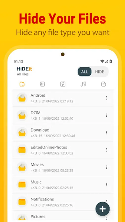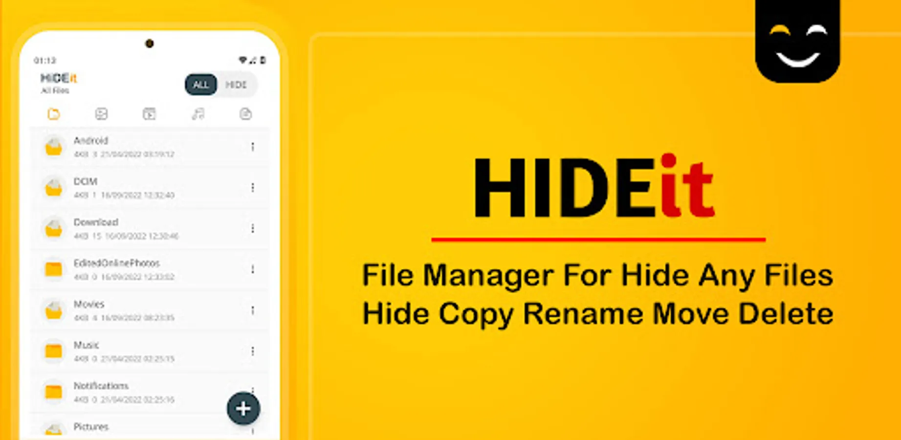 HIDEit is an application to hide your files. Hide or unhide files on your phone easily. HIDEit hides your files and encrypts them with a special algorithm. All the processing will be done on your device and we are not use server and we are not share your files with anyone else. We need to read and write on your device and access to manage all your device files. Please allow permission for storage access.