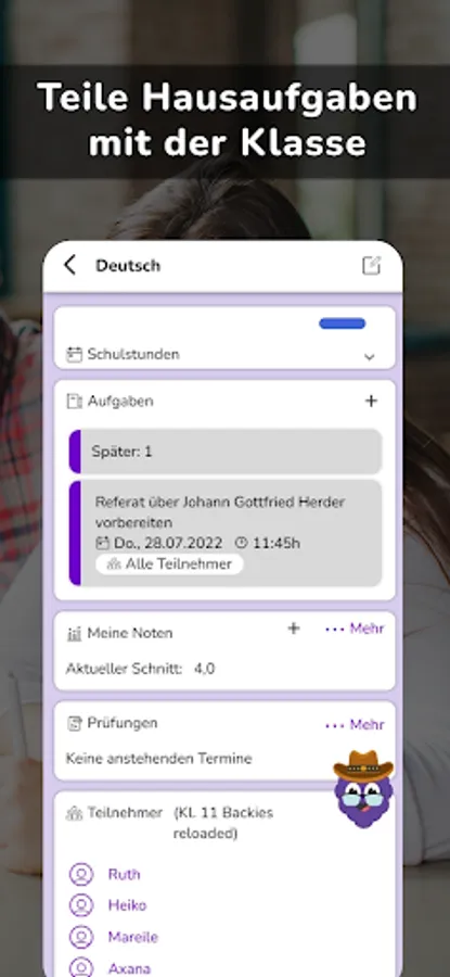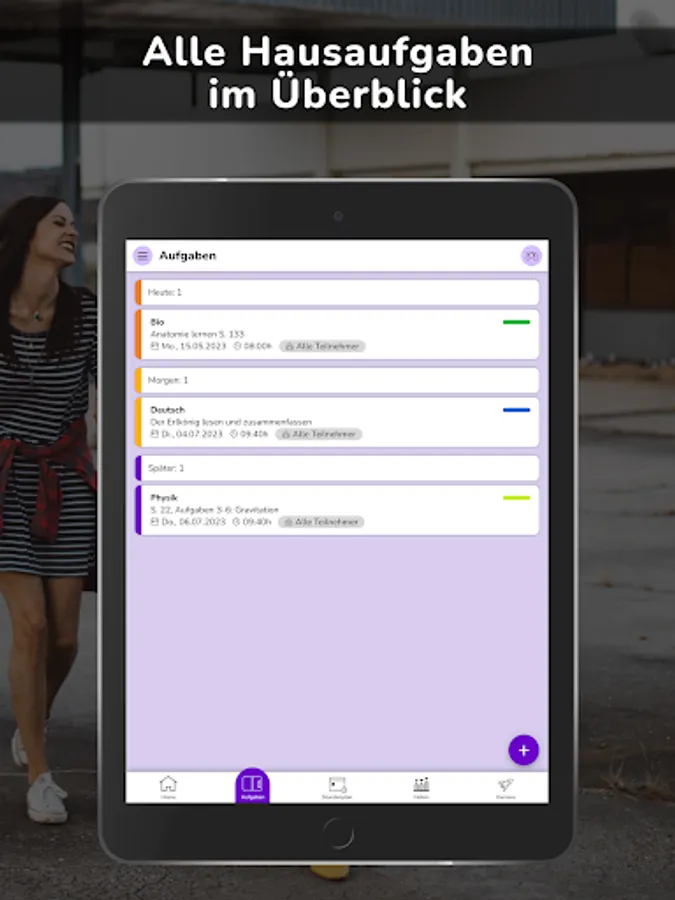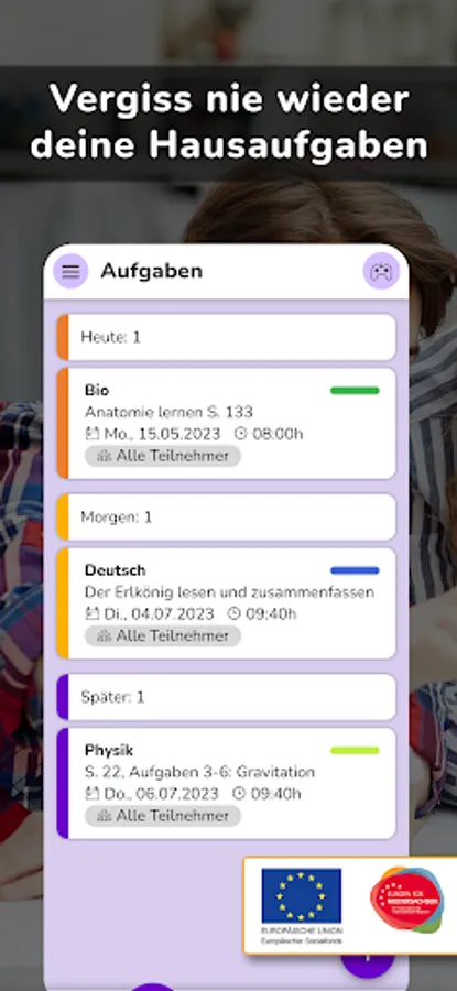 You just put in your homework and you always have it to hand. Share them with your classmates and nobody will forget their homework in the future. Plus, you can always have a reminder about your homework.