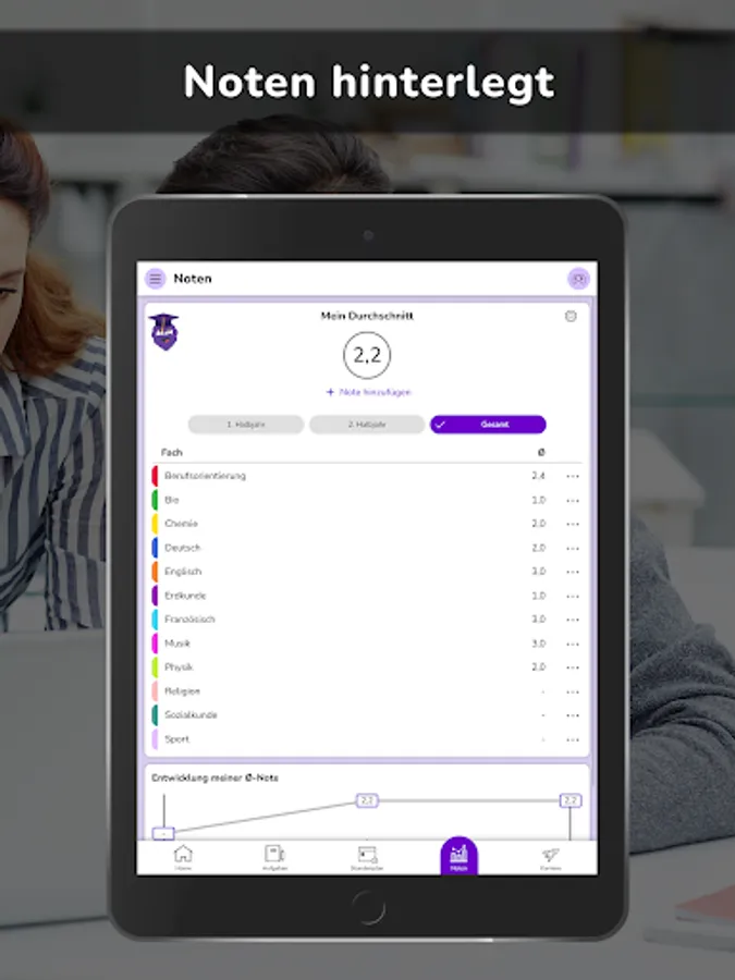 Homework app, digital timetable, grade calculator, digital training search and much more. Everything in just one app!