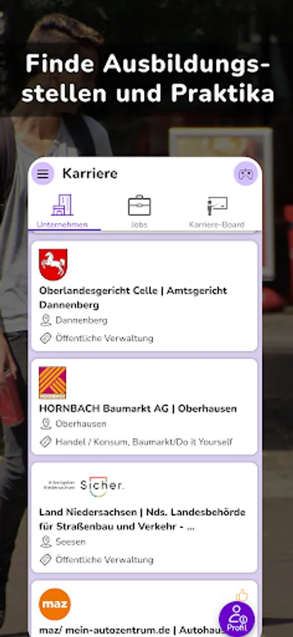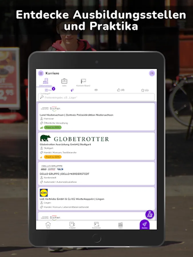 Also unique: Your personal area for internships, training and other jobs, in which you can prepare for your future career.