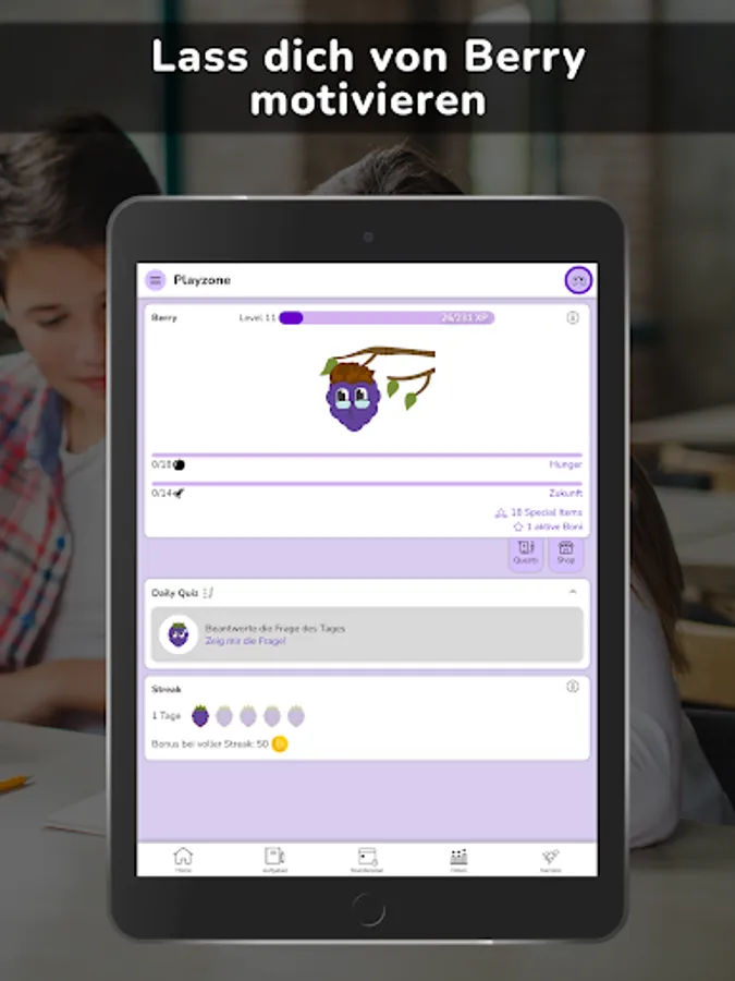 Your first school planner that rewards you the more active you are! berry2b helps you organize your homework, school grades, exam dates and more. If you like, you can also easily share homework or exams with your class / course. To make all of this fun, there are a few small games in the app and various awards that motivate you to stick with it on a regular basis.