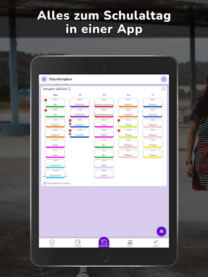 You always have the timetable with all subjects, teachers and course rooms in view in your new school planner. A student in your class creates the timetable. The rest of the class can take over the timetable with one click!