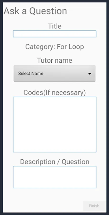 This app allows NYIT students to post their questions before tutor sessions. Students can choose which category of questions they want to ask. Students will be provided relevant links that help them learn by themselves. Students will be required to provide information such as the tutor's name and description of the questions. Only tutors can browse the questions asked through the app. Tutors will be provided with a passcode. The app will allow tutors to effectively prepare for the tutor session which will lead to a better experience.