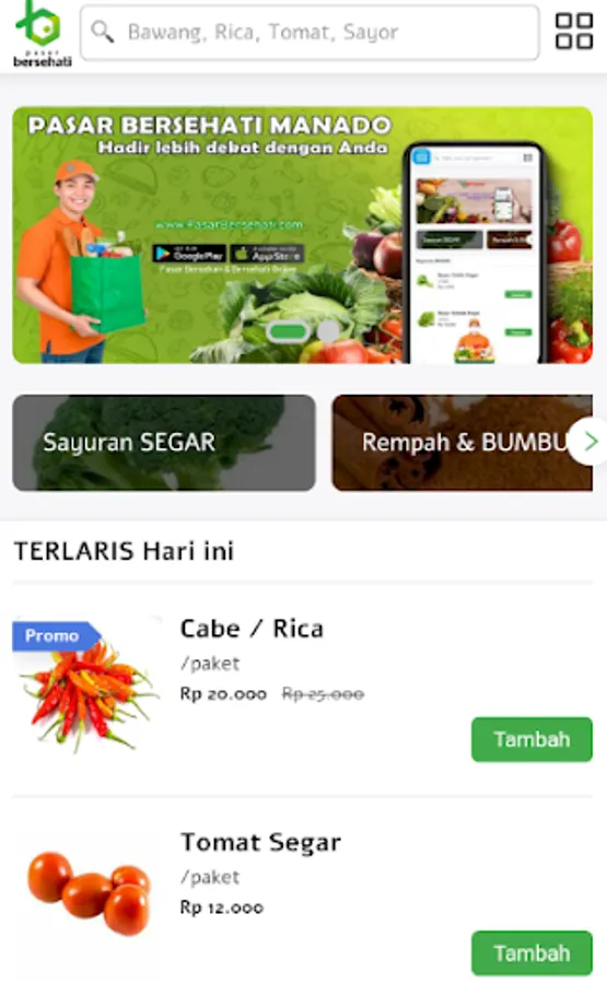 Hello, Bersehati Online is the FIRST # 1 and MOST TRUSTED online vegetable shopping and online shopping platform in Manado, North Sulawesi with home-to-home service.