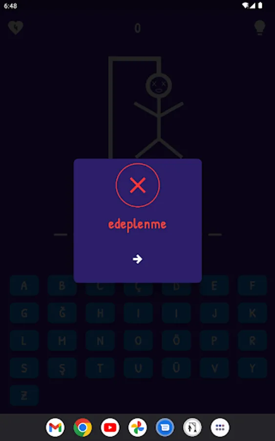 A simple but fun game consisting of Turkish letters and words.