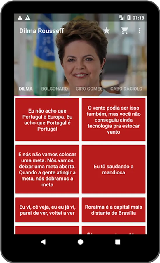 Be a premium user and also listen to the amazing speeches of the former president of Brazil, remember her classic phrases in this app. Embark on this adventure!
