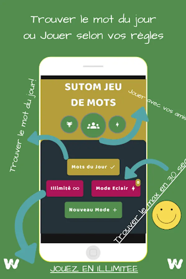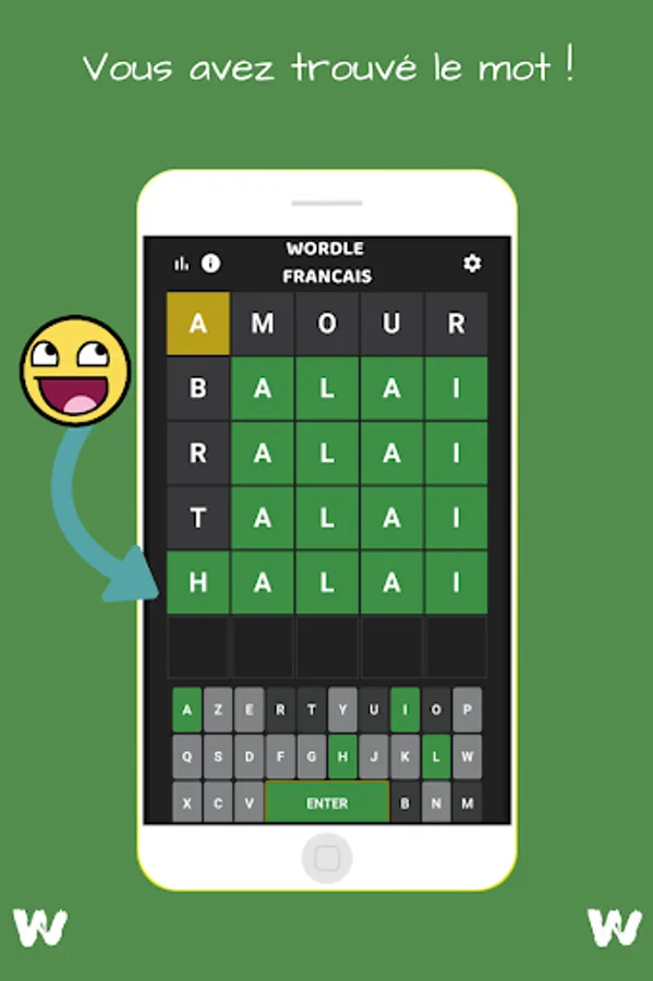 Met Sutom or even the Wordle in French - the French word puzzle game with full of feeling is now available on your phone. Train your brain with a recent French word puzzle challenge. In addition to the classic game and we also offer several modes: