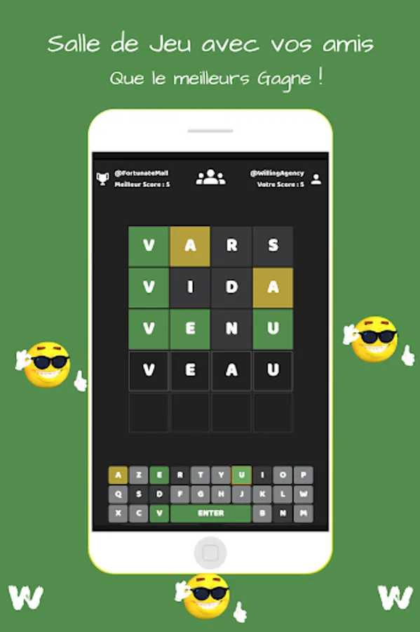 3) Custom Wordle challenge. No need to wait for the next day to find the new French wordle word puzzles. Play an unlimited number of times through the custom mode and guess new words from the French wordle. This mode is “Custom Mode”. Guess random words of 4, 5 or 6 letters.