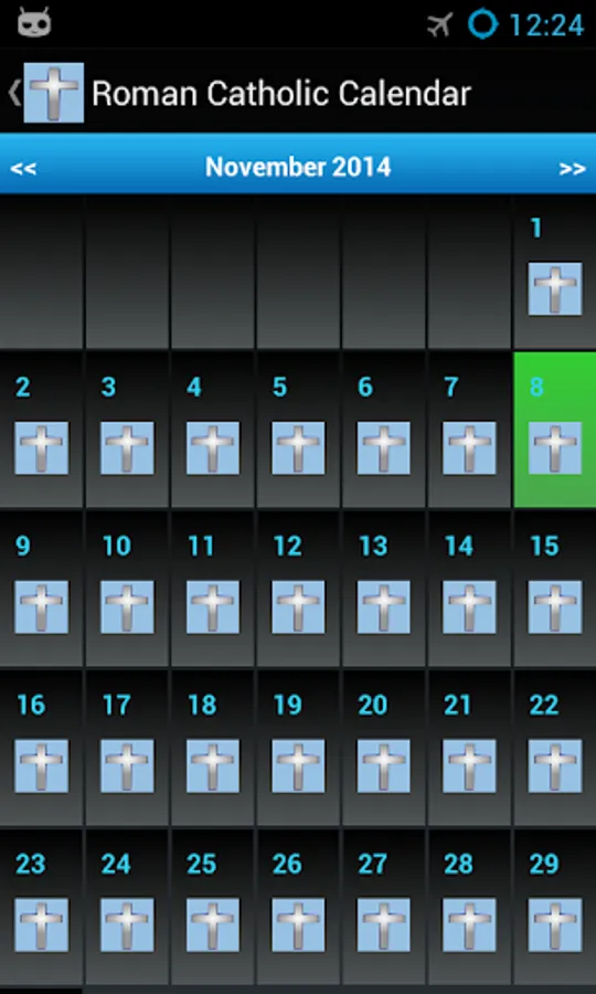 -Shows days of obligation and other events in ordinary time in the Roman Catholic calendar