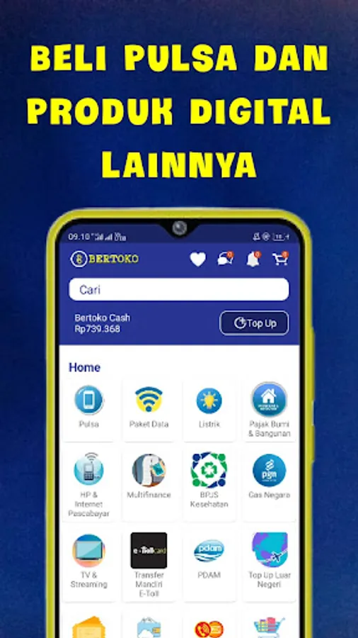 With credit prices that are quite cheap, besides being used for personal use, it also allows you to use this application as a medium for selling credit. There are also other digital products, such as data packages, electricity tokens, electricity bill payments, BPJS, E-Wallet Top Up, and others. Equipped with a B Cash balance feature (Bertoko Cash) that makes it easier for you to make transactions. You can also shop for various products such as fashion, electronics, various snacks, and more. Equipped with a request feature for the product request you want. If you are a product supplier, you can also use the Shop Here feature to promote and sell your products. Don't miss the interesting events.