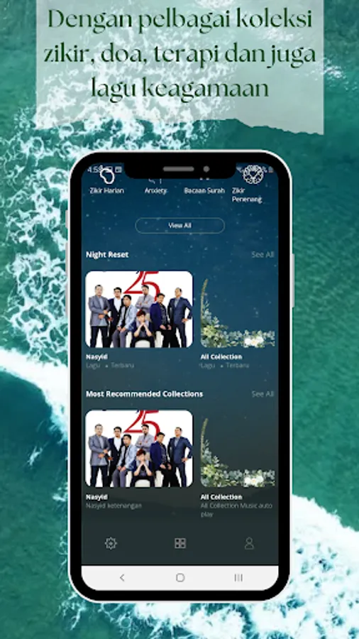 A collection of set lists of recitations to Allah are included in the Recitation MP3 application, which can be used to calm your spirit and find inner peace.