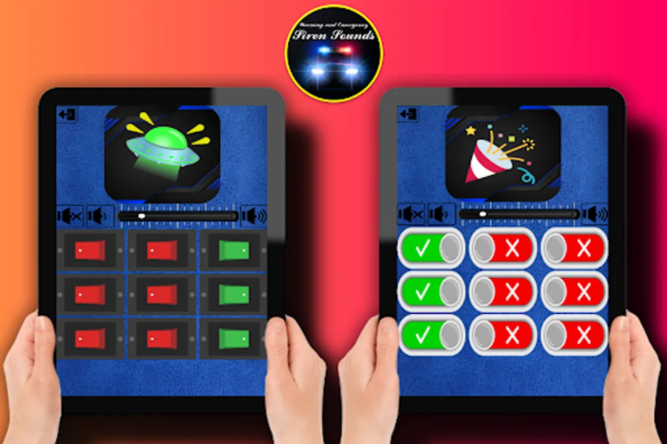 Play the alarm and emergency siren you want by selecting the alarm or siren categories on the main screen.
