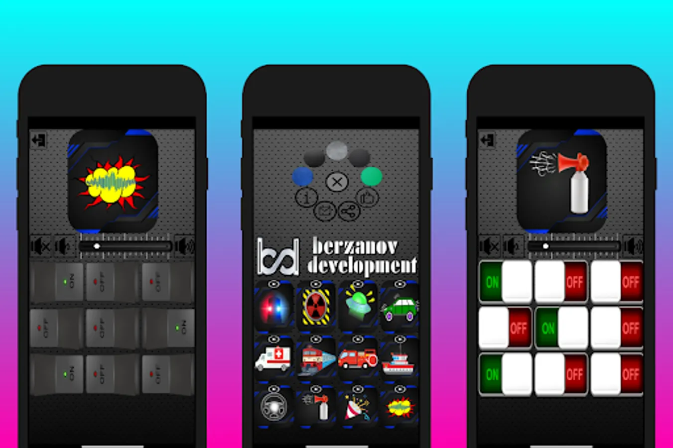 The most well-known, nostalgic and classic air horn or siren sounds are combined in this application.
