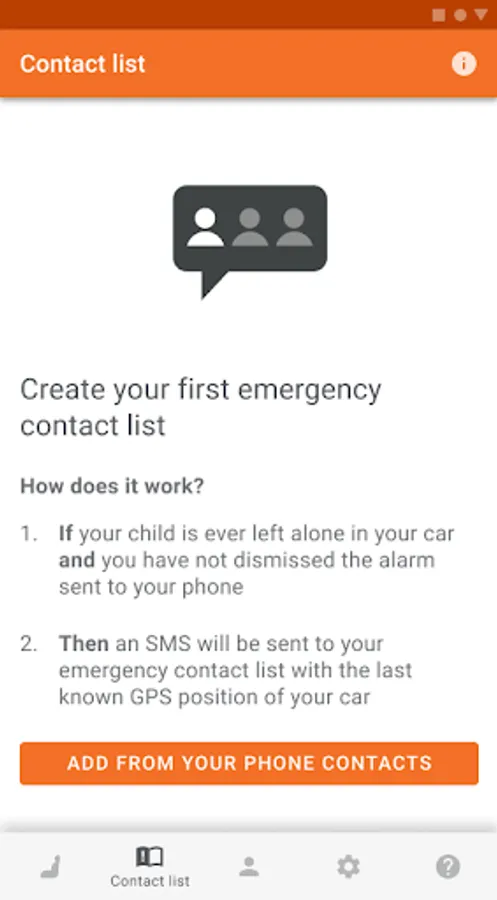 The app connects to your child seat and activates the anti-abandon alarm and the unbuckle detection. With the app you can also send SMS to your emergency contact list.