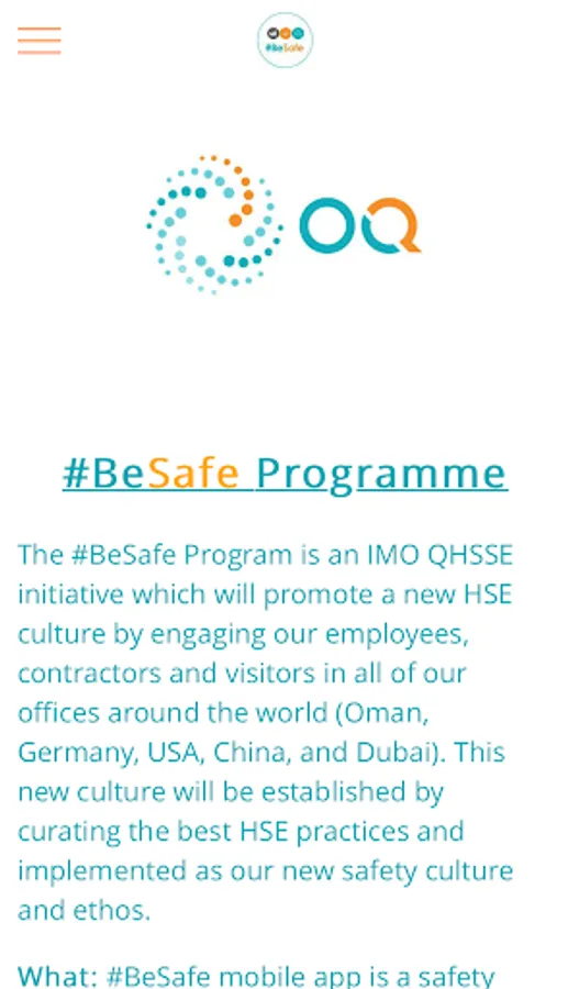 #BeSafe Program is an IMO QHSSE initiative which will promote a new HSE culture by engaging our employees. This new culture will be established by curating best HSE practices from across the group and implemented as our new safety culture and ethos
