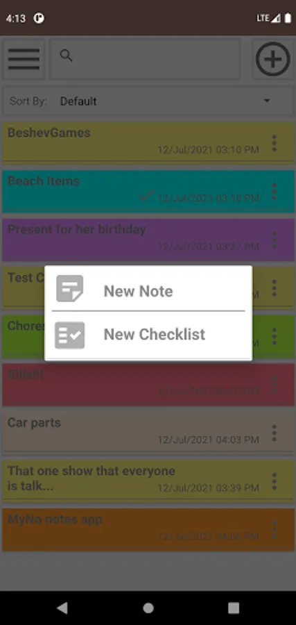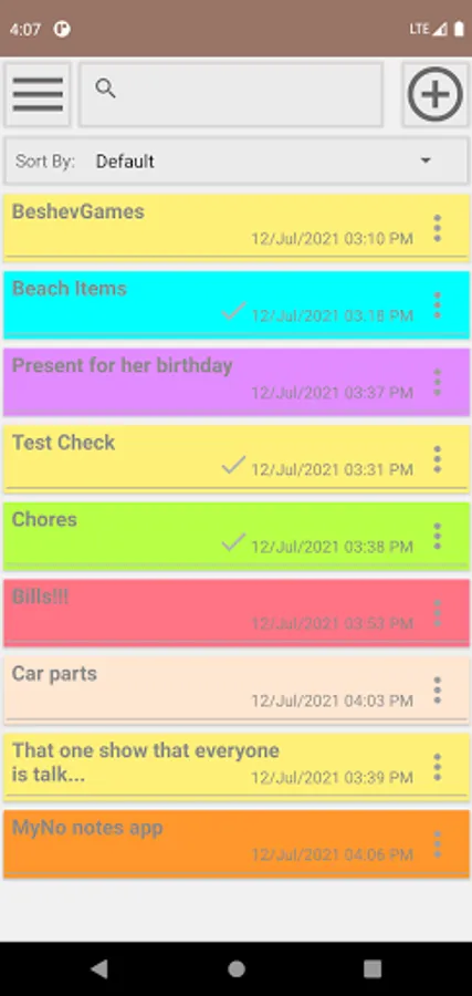 You can choose the individual color of your notes or lists by clicking on the square button next to the save 💾 icon. Then a new window will appear from which you can choose what color you would like your list or memo to be.