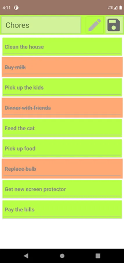 To create a new list with items simply click the "+" icon and add another item to the list. After you're done save it. When you open your newly saved list you will be able to add or delete items from it, as well as mark them as done. The background color of the items, which are already done, can also be changed according to the user's preferences.